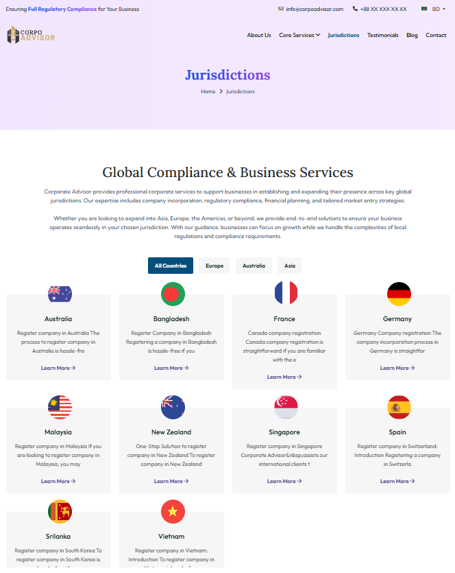 CorpoAdvisor offers expert legal services tailored to each country, with helpful articles and client reviews to guide your decisions.
