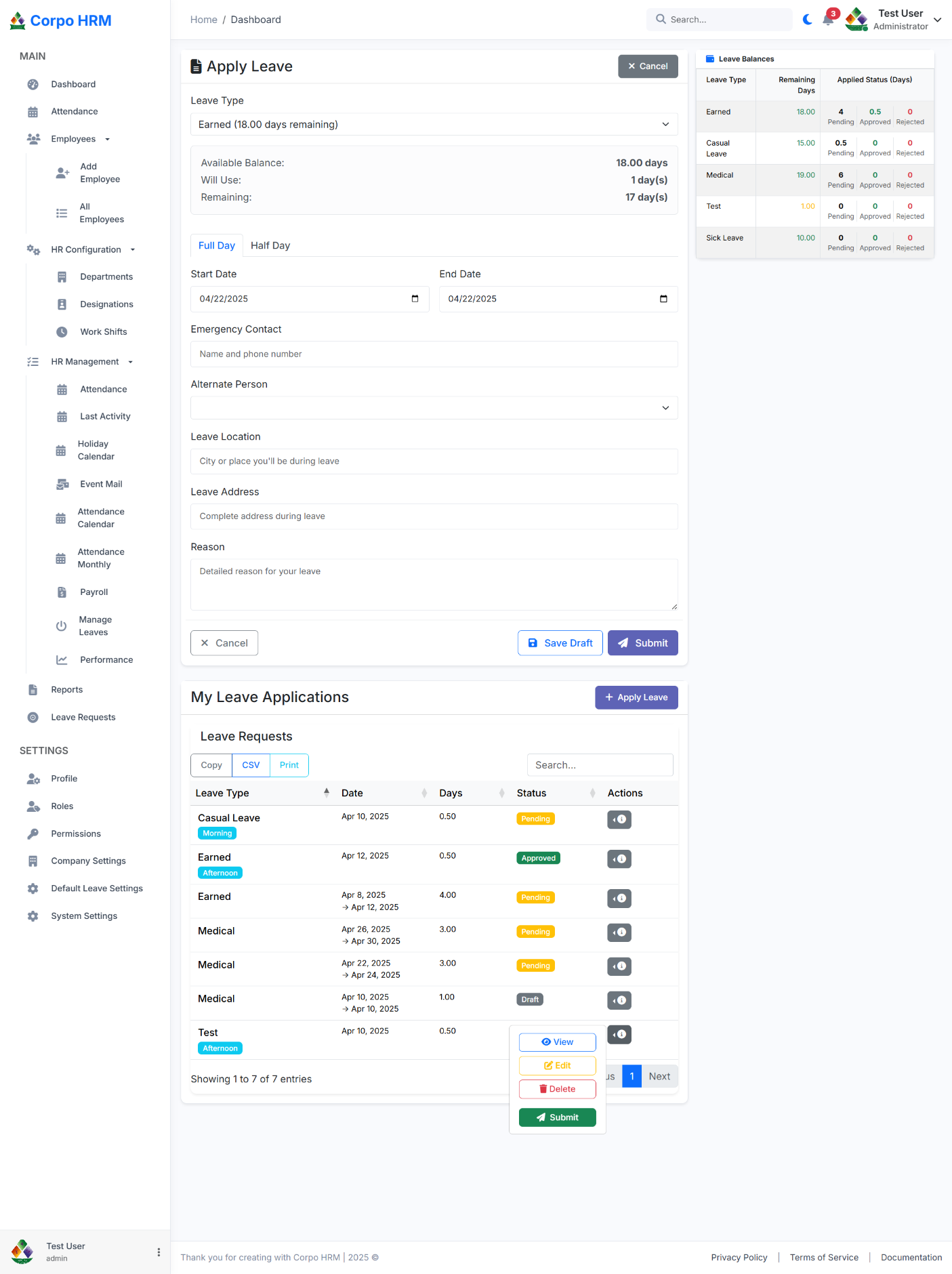 You're submitting queries for Corpo HRM